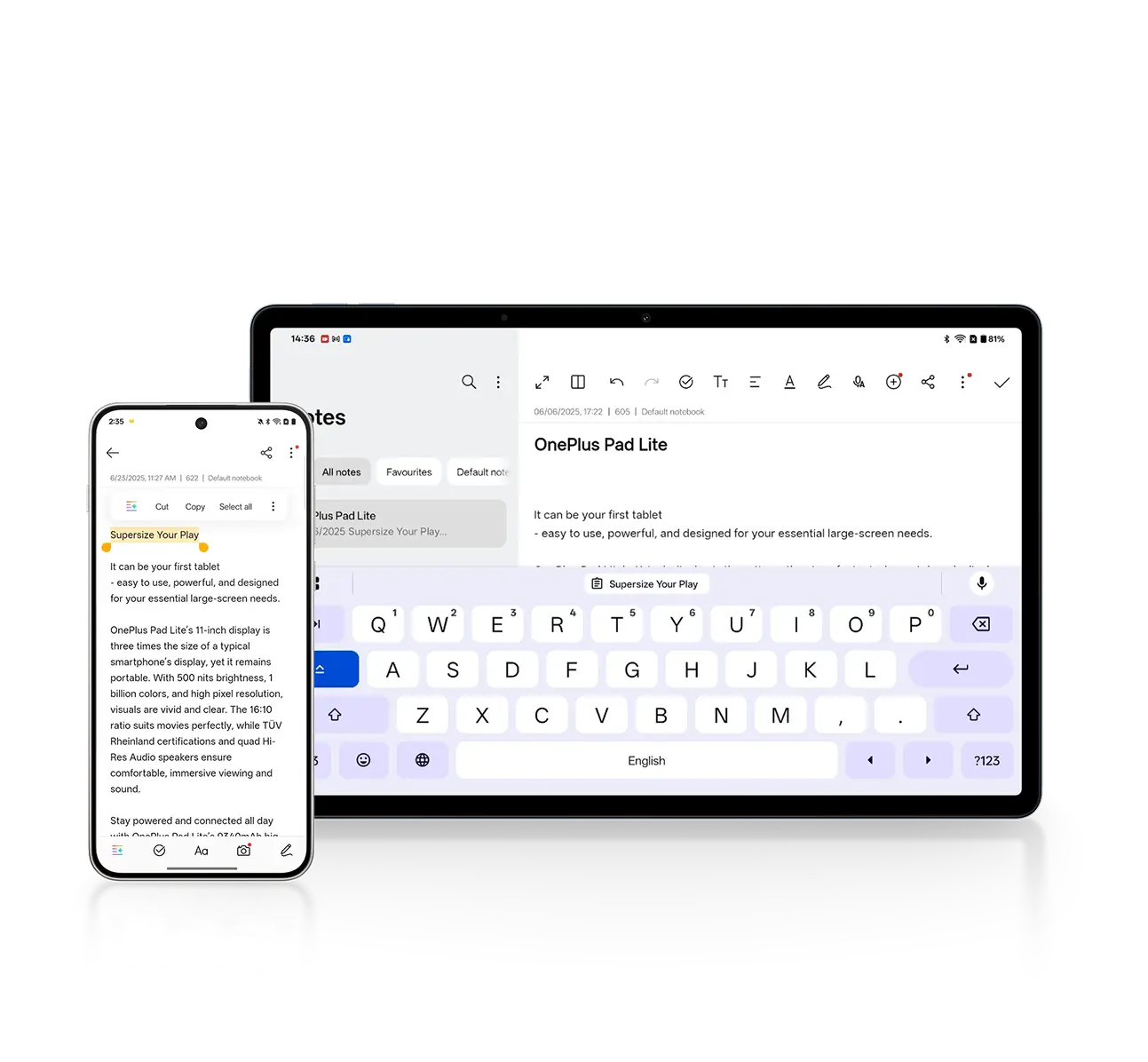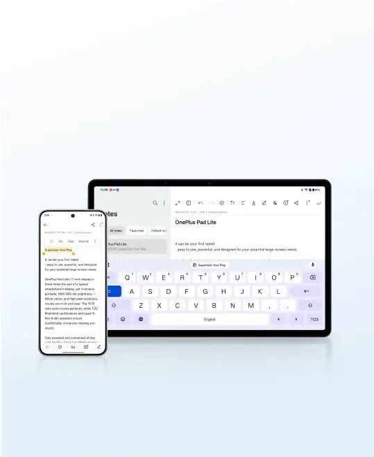 Power your productivity with Screen Mirroring to drag and drop files, videos, and images between your tablet and OnePlus phone.